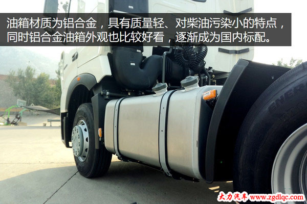 油箱采用鋁合金材質(zhì),具有質(zhì)量輕、對(duì)柴油污染小的特點(diǎn),也是目前國(guó)內(nèi)重卡的主流配置。同時(shí)原裝鋁合金油箱在外觀上也比較美觀,看起來(lái)更加的漂亮。