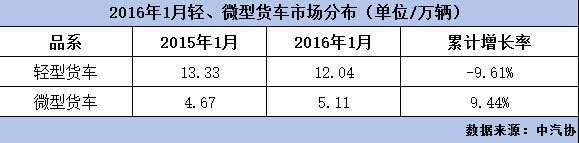 1月份輕卡銷(xiāo)量120449輛,同比下降9.61%;微卡銷(xiāo)量51129輛,同比增長(zhǎng)9.44%。