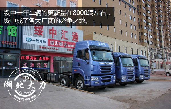 綏中一年車輛的更新量在8000輛左右,綏中成了各大廠商的必爭之地,在綏中各個品牌的卡車經(jīng)銷商基本都能看見。其中解放的在當?shù)氐谋S辛磕苓_到80%,當?shù)貙τ诮夥诺钠焚|還是比較認可,在綏中的大街上J6隨處可見,而且以領航版居多。