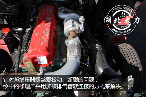 綏中以散戶車輛為主,在提車之后都會根據(jù)自己的使用需要進行相應的改裝。針對J6增壓器螺絲愛松動的問題,綏中的修理廠采取排氣管軟連接的方式來緩解震動,改裝后,增壓器螺絲松動甚至斷裂的情況基本杜絕。像加裝變速箱吊架,加裝尿素保護罩,電瓶防護架等在當?shù)匾残纬闪烁难b特色。
