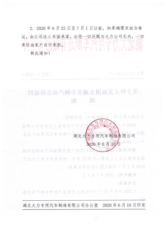 Tag:湖北大力 大力汽車 大力公司 公告 合格證