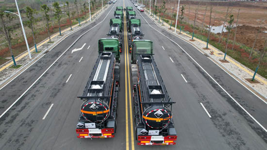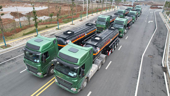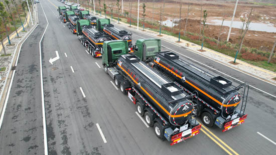 湖北大力汽車(chē)公司批量化工運(yùn)輸車(chē)發(fā)車(chē)
