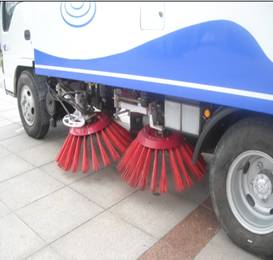 6. “中置四盤刷-后置吸嘴”的結(jié)構(gòu)布置,清掃寬度大,清掃效率高,并有利于清掃裝置與吸嘴的調(diào)整和維護(hù)。由于該結(jié)構(gòu)形式前懸短、吸嘴離地間隙較高,因此轉(zhuǎn)場運(yùn)輸時整車通過性較好。