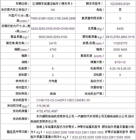 江淮隨車起重運輸車主要技術(shù)參數(shù)