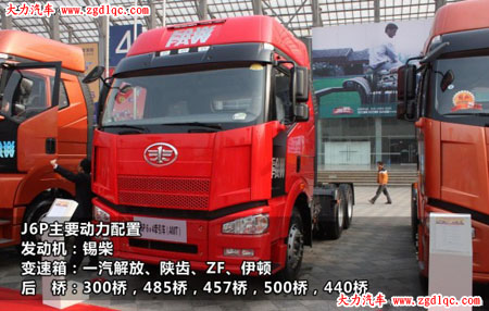 J6P動力搭配上比較豐富,主要搭載錫柴CA6DM2、CA6DN1、CA6DL2、CA6DL1系列發(fā)動機,最小240馬力,最大500馬力,變速箱有一汽解放(9檔、10檔、12檔)、ZF(16檔)、陜齒(12檔)、伊頓(13檔)等品牌可供選擇,后橋匹配16噸輪邊減速300橋,13噸單級減速485橋,13噸單級減速457橋,13噸單級減速500橋,單級減速440橋。