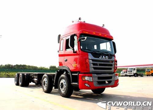 與輕量化牽引車相似,江淮重卡推出的中體車同樣是在江淮重卡第四代全新車身的基礎(chǔ)上開發(fā)而成。如果說,江淮重卡今明兩年在牽引車上主推的是輕量化,那么此次推出的中體車便是主打載貨車。而這“打頭陣”的車型便是江淮重卡的8×4載貨車。