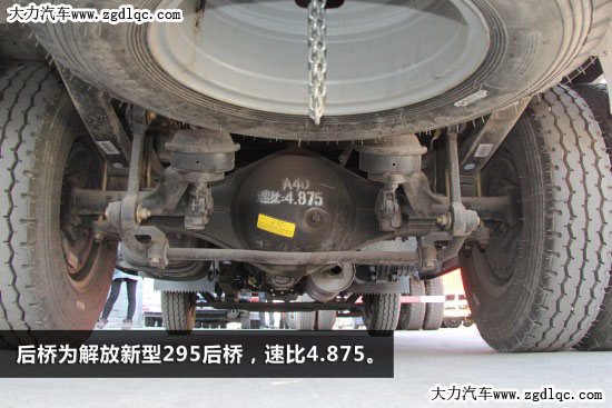 輕卡后橋?yàn)榻夥判滦脱邪l(fā)295后橋,速比4.875。前橋?yàn)?片簧結(jié)構(gòu),后橋彈簧板片數(shù)為3+4。從在車(chē)輛后部觀(guān)察到這款輕卡配備了橫向穩(wěn)定桿,穩(wěn)定性能更好。