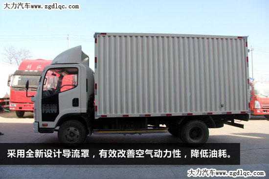 J6F 4x2廂式底盤(pán)軸距為3300mm,駕駛室使用1894mm排半駕駛室,J6F輕卡平板車(chē)型標(biāo)配天窗,貨箱車(chē)型標(biāo)配導(dǎo)流罩。全新設(shè)計(jì)導(dǎo)流罩,有效改善空氣動(dòng)力性,降低油耗。
